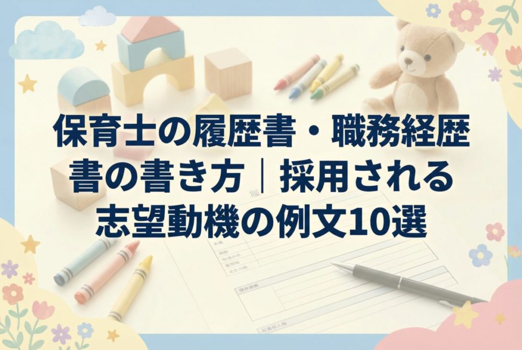 保育士として転職を考えているけれど、職務経歴書の書き方がわからないと悩んでいませんか。 「何を書けばいいのかわからない」「自分の経験をどうアピールすればいいの... -