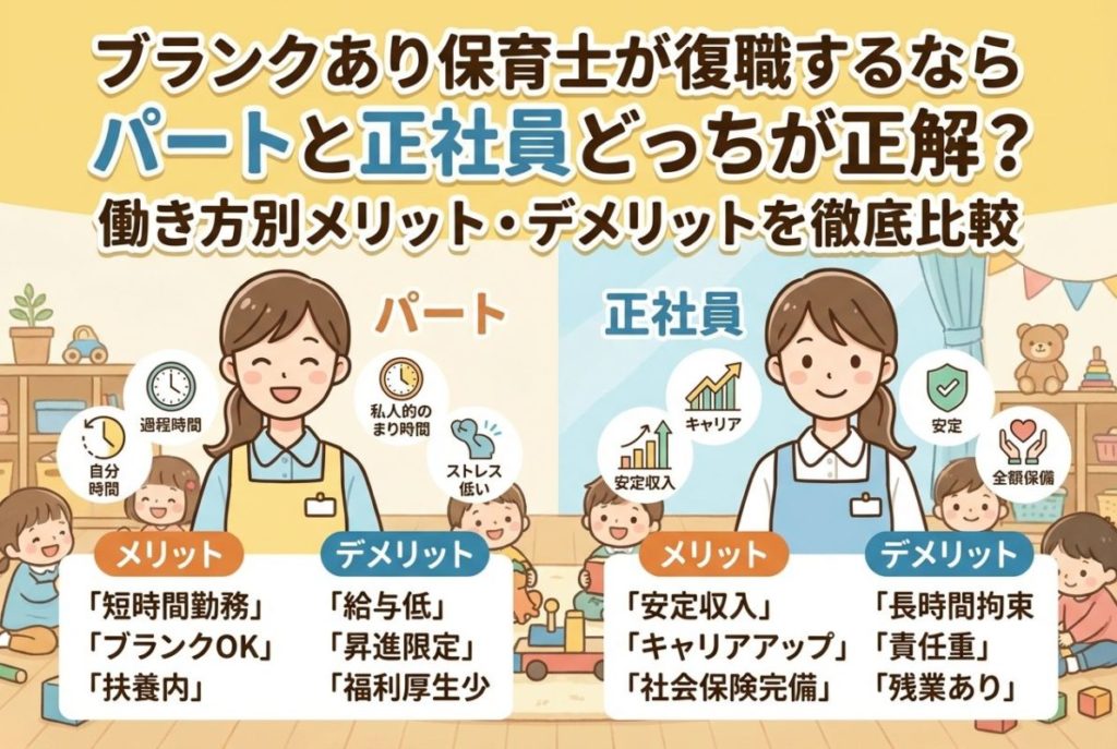 ブランクあり保育士が復職するならパートと正社員どっちが正解?働き方別メリット・デメリットを徹底比較